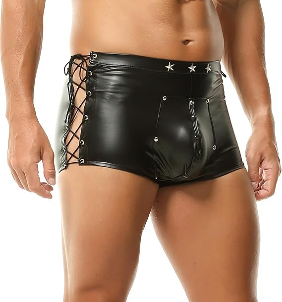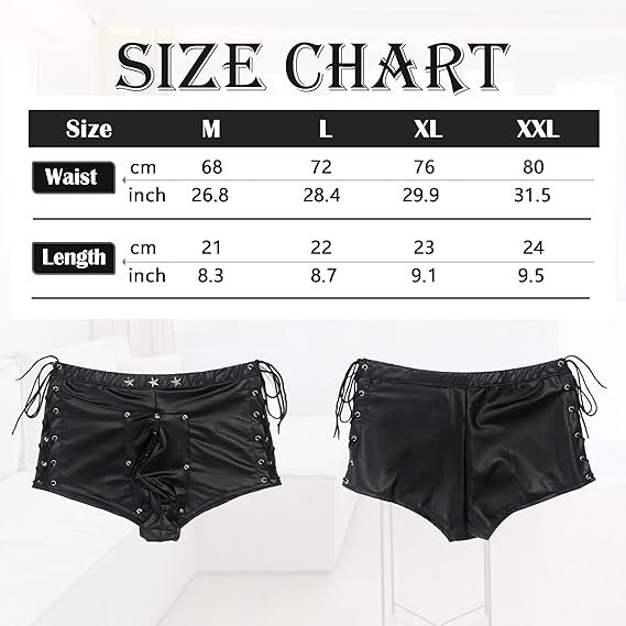 Own the moment with these leather-look men’s fetish shorts, designed to combine raw attitude with irresistible detail.